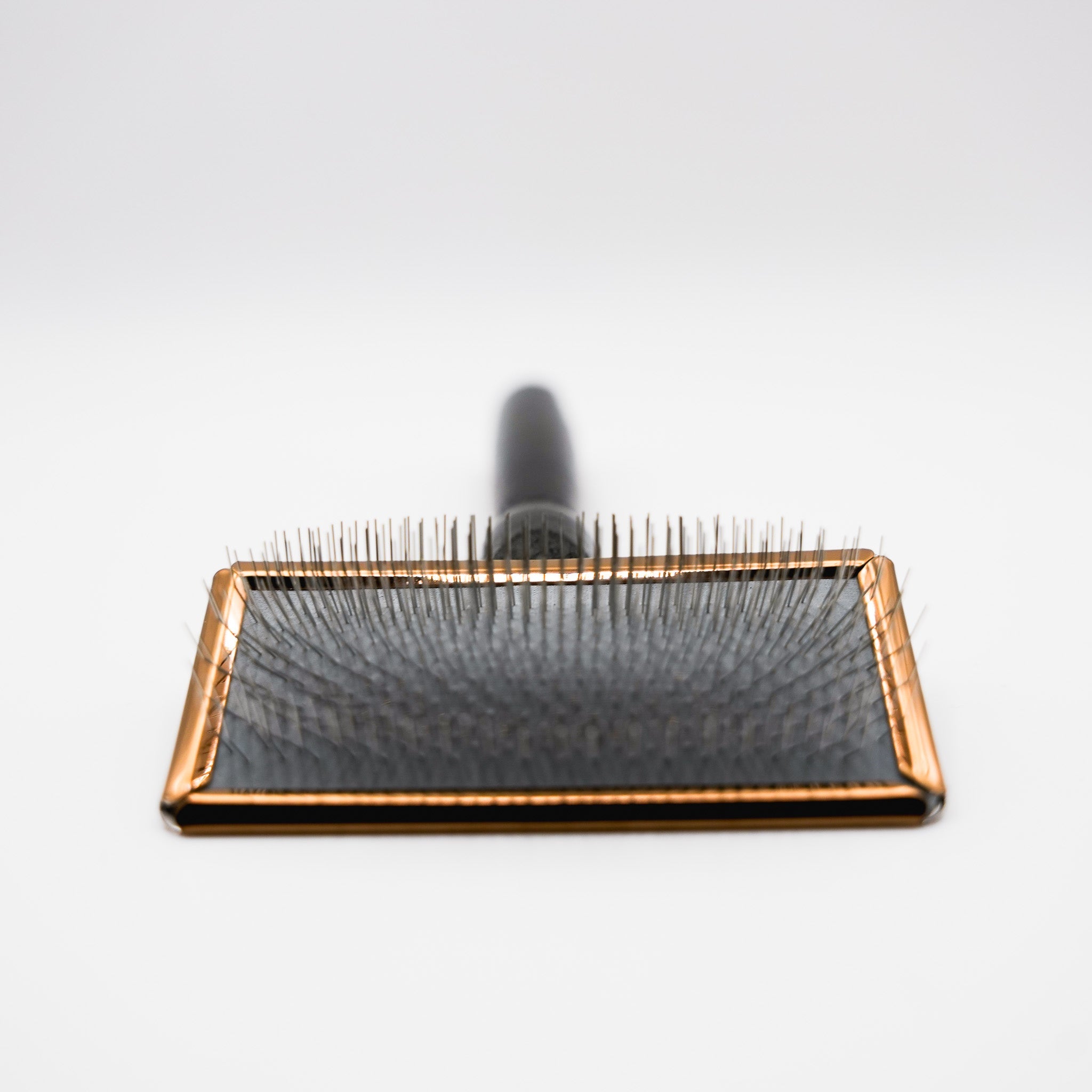 Designed with staggered 1.2 cm stainless steel pins, it works through knots and light matting without harsh pulling or damaging the coat. The pins glide cleanly through the fur, lifting and separating hair to maintain softness, volume and natural movement.