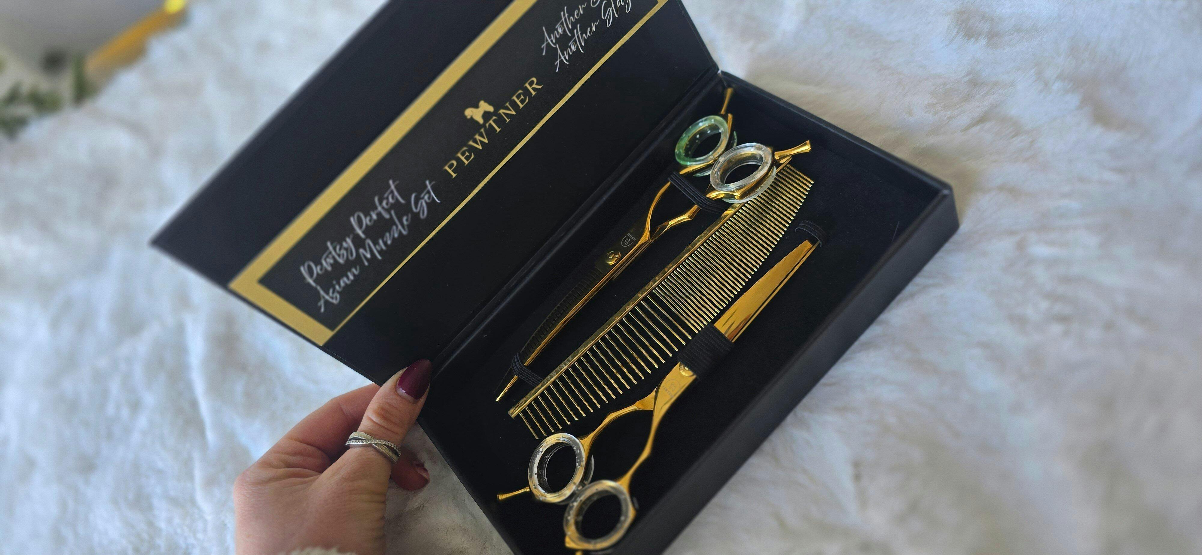 Elevate your grooming toolkit with this meticulously crafted set, designed for professionals who demand excellence in every detail! Pewtner scissor cloth included.